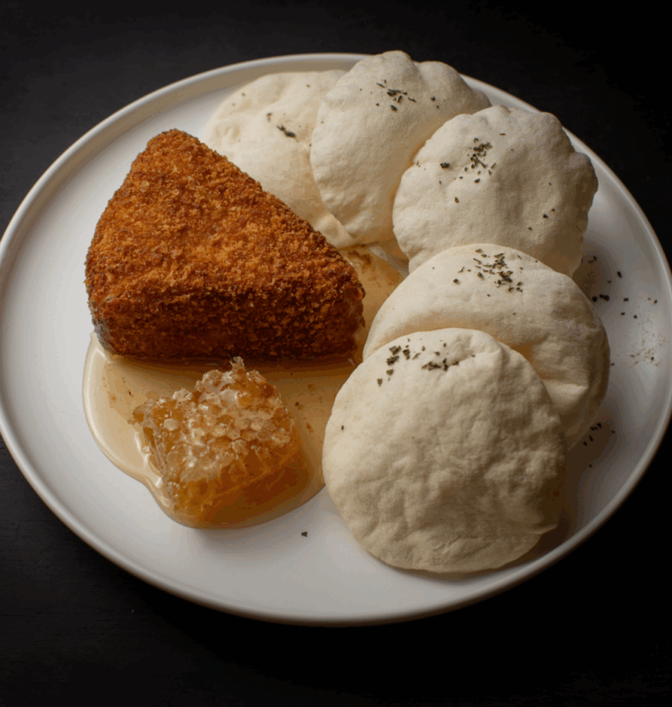 Burrata, creme de tomates, crisp de presunto parma e pão da casa.